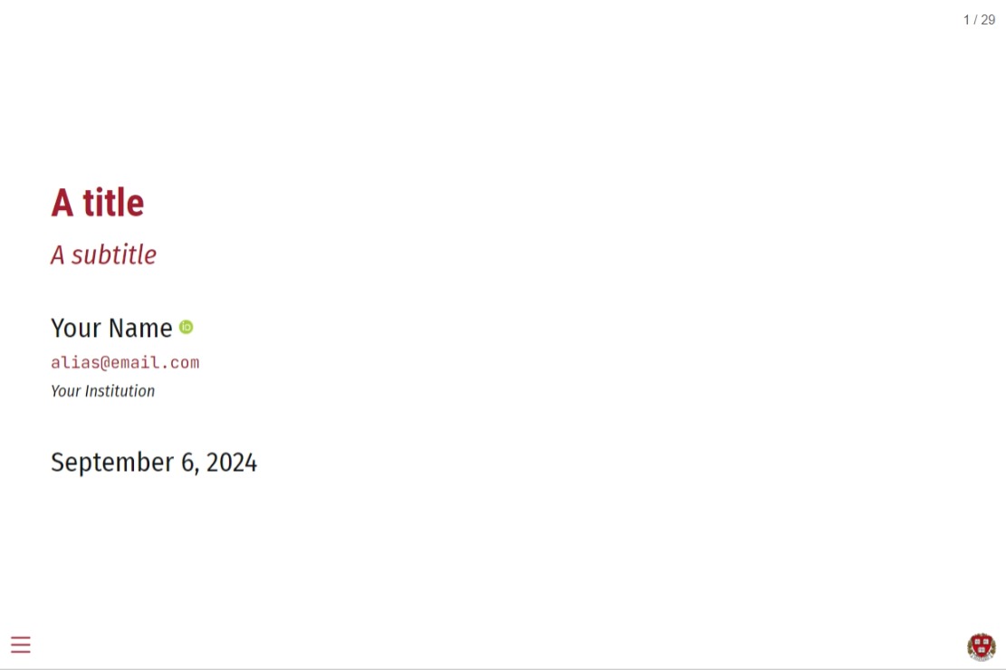 A minimalist and elegant presentation theme for Quarto Reveal.js, inspired by Kyle’s LaTex template. This version of the repository has been updated to match the API 209 course palette. The original template is based on Grant McDermott’s work, so all kudos to him and Kyle Butts.